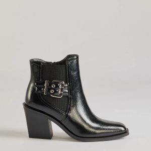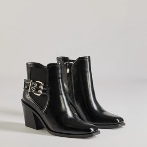 Edgy Fave Buckle Strap Faux Leather Ankle Booties