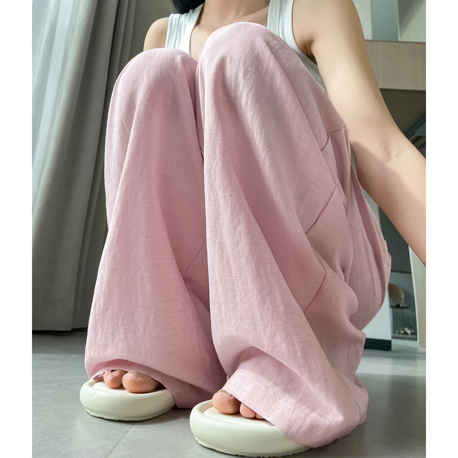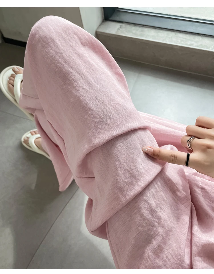 Cotton and Linen Women’s Wide Leg Full Pants High Waist Summer Female Elegant Minimalism Straight Loose Trousers 2026 Autumn