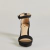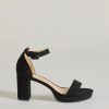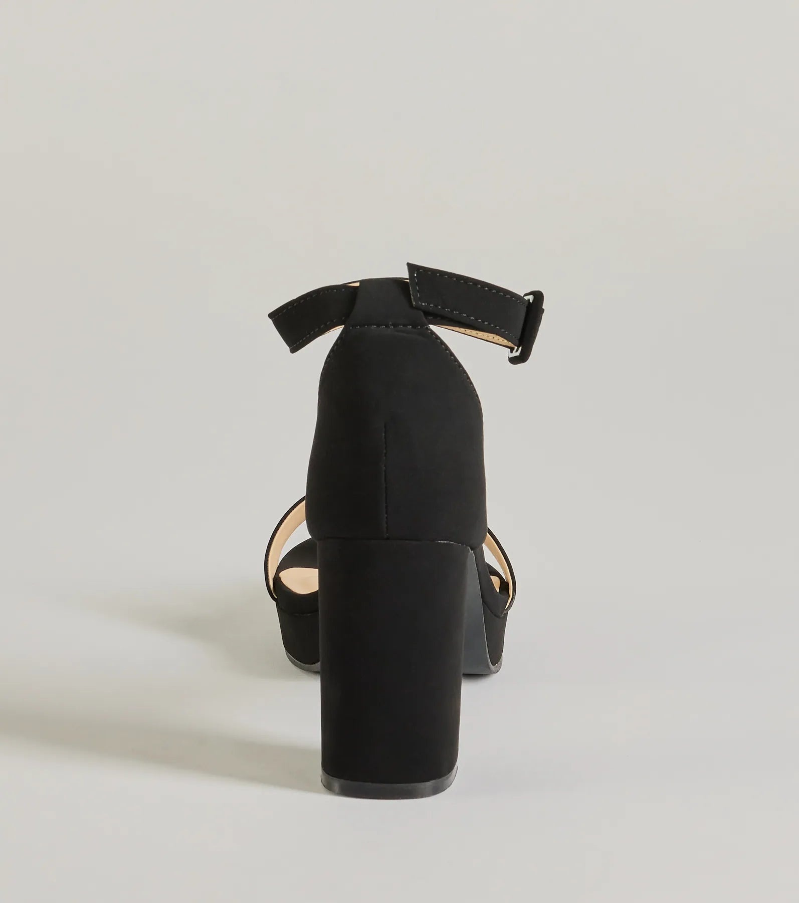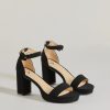 Elevate your fits’ with platform block heels that feature an open almond toe with a single strap design. an adjustable ankle strap with buckle closure. and a platform sole. Complete with an LBD and clutch for the perfect date night outfit!