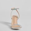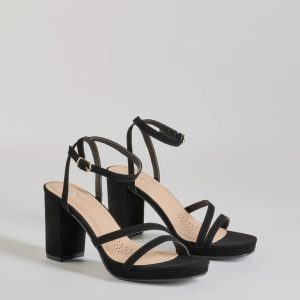 - Rhinestone toe and adjustable ankle strap. buckle closure