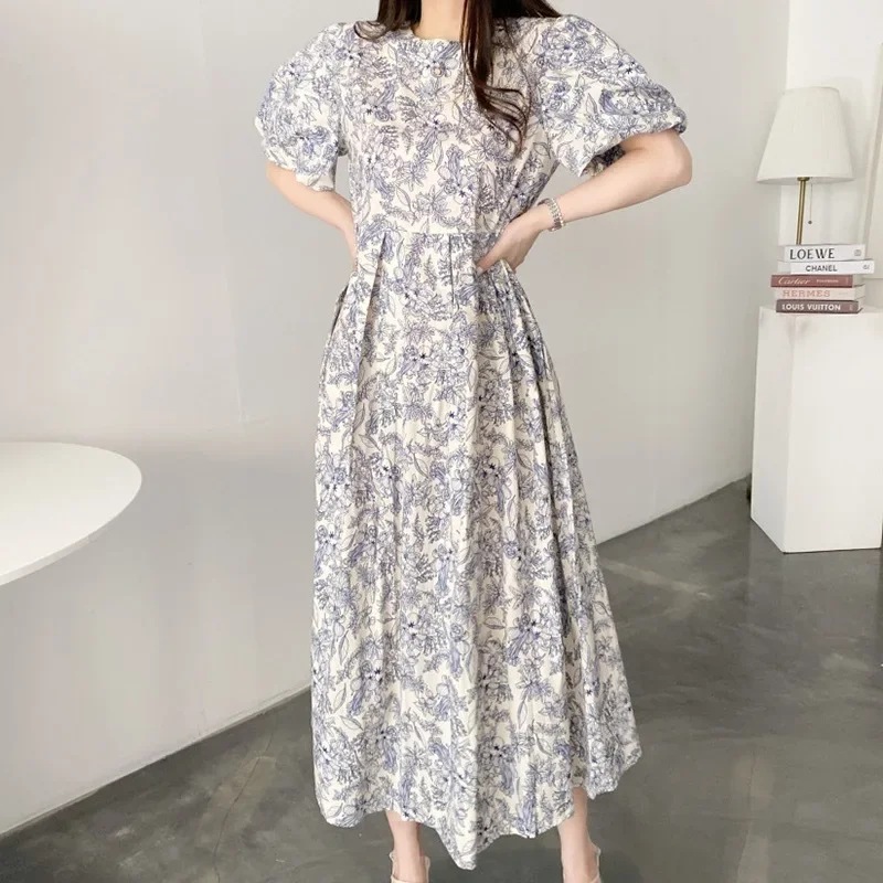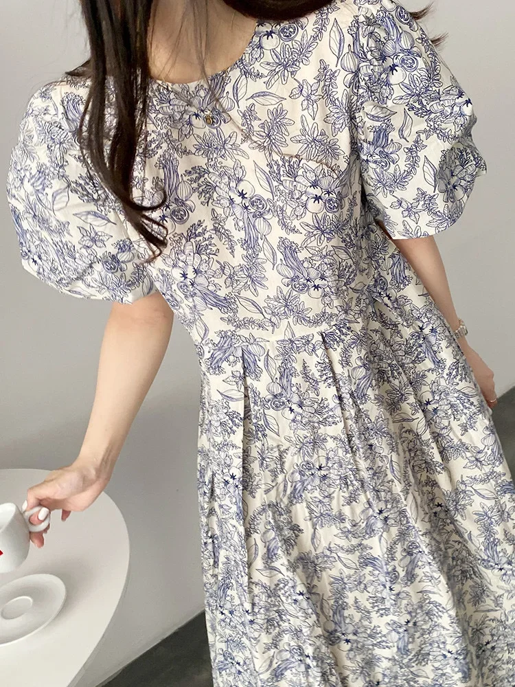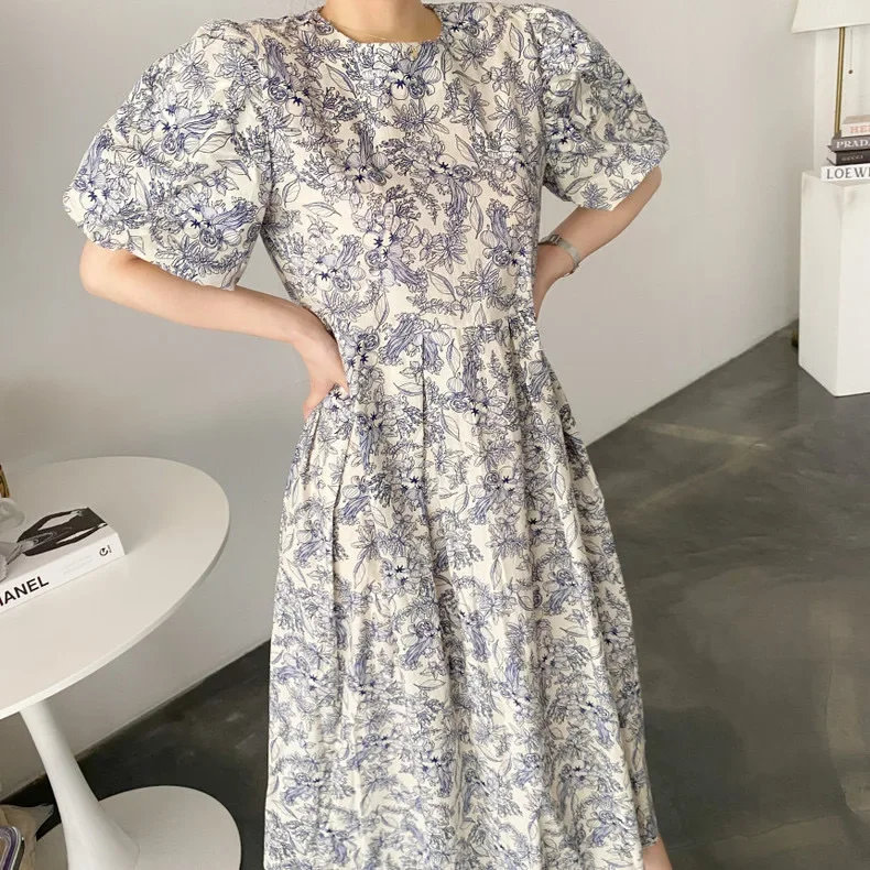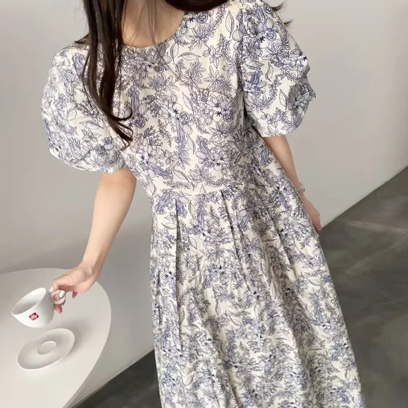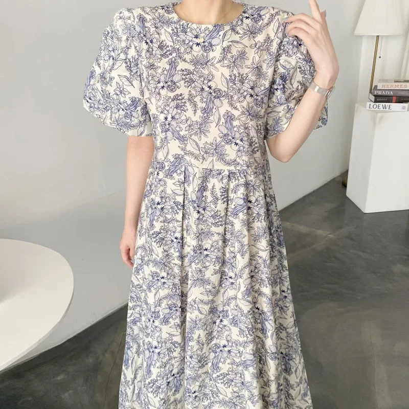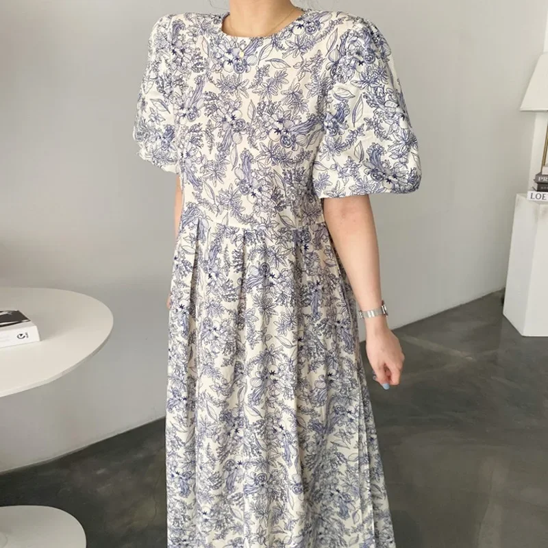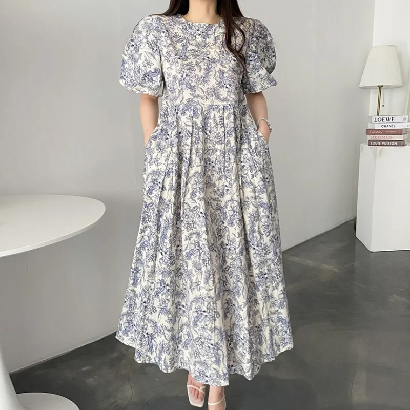 Be the first to review “Loose Korean Chic Summer French Style Floral Print round Neck Splice Design Long Skirt Dress with Lace Hemline Ankle-length”