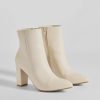 These basic faux leather booties were made for struttin’! They feature a pointed toe. an inner zipper closure. and a sleek block heel that elevates the style. Complete the look in a chic .