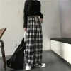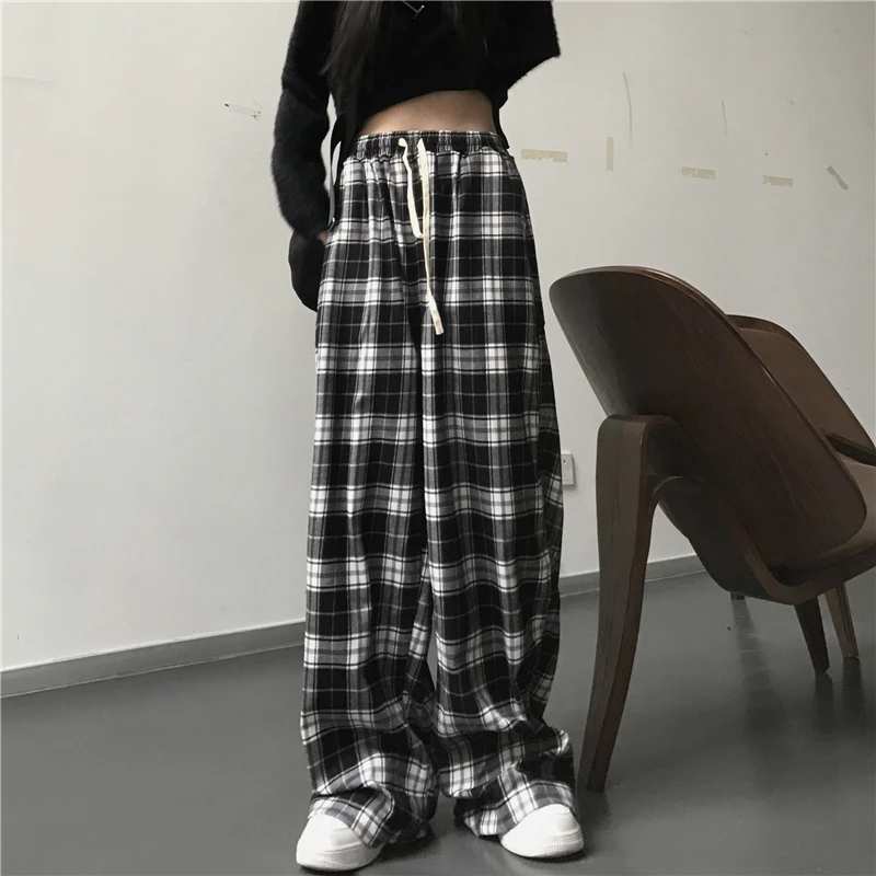 Oversize Women Sweatpants Fashion Black Plaid Casual Pants Baggy Elastic Waist Pockets Student Unisex Hip Hop Loose Trousers