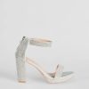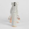 Step out and shine in these rhinestone block heels featuring a glitter mesh open almond-shaped toe. wide toe and ankle straps. a back zipper closure. a block heel. and all-over sparkling rhinestone embellishments. Complete the look with a stunning .