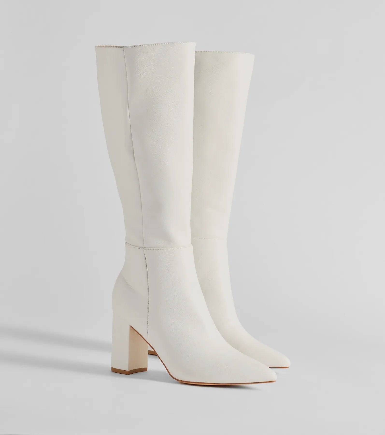 These stylish faux leather boots feature a sleek pointed-toe and an under-the-knee length shaft perfect for styling with your favorite bottoms and tights.