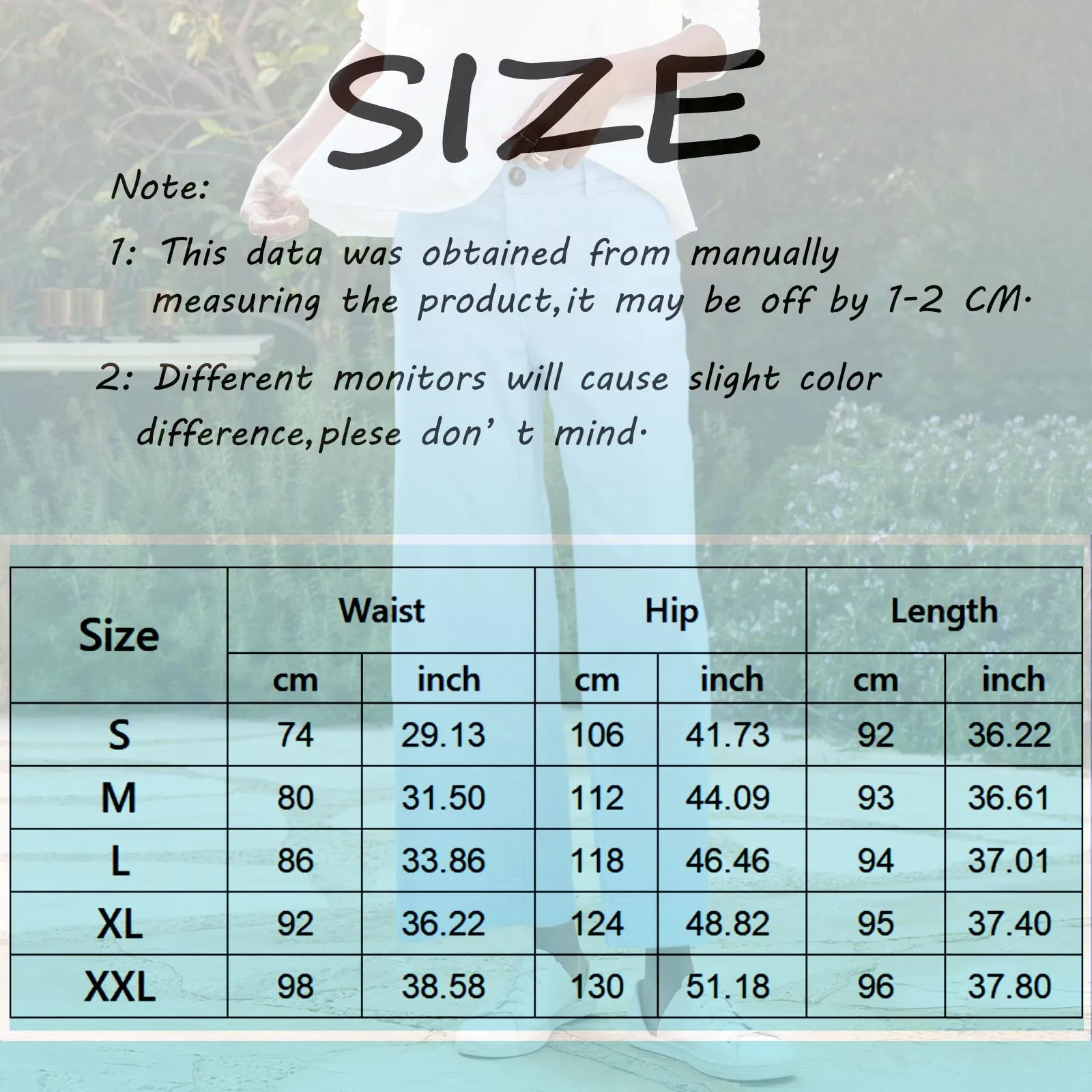Size:XL Waist:92cm/36.22” Hip:124cm/48.82” Length:95cm/37.40”